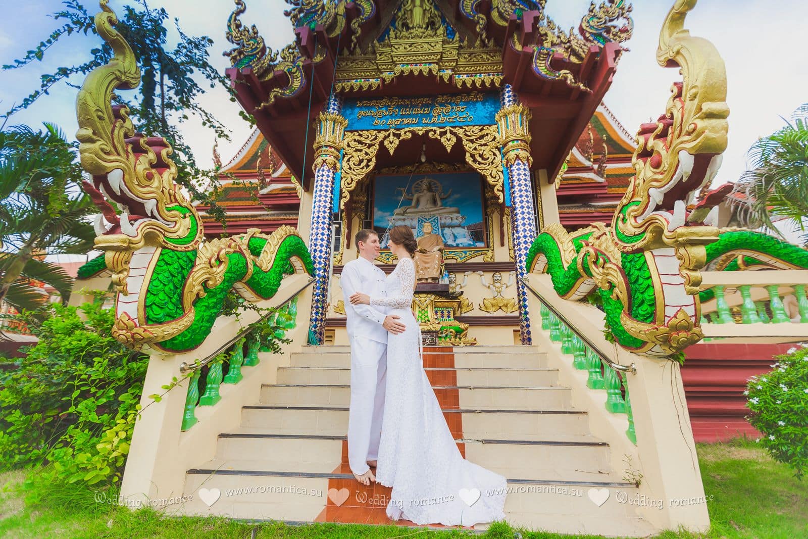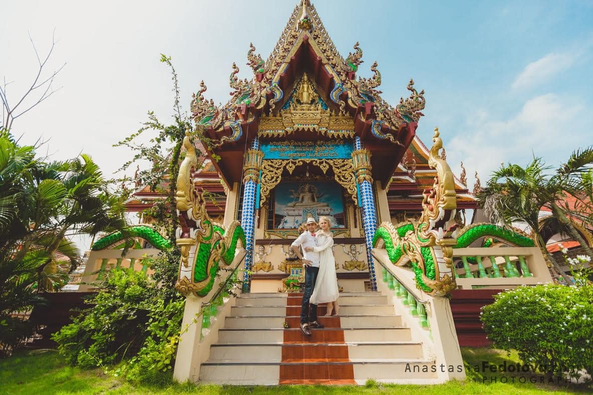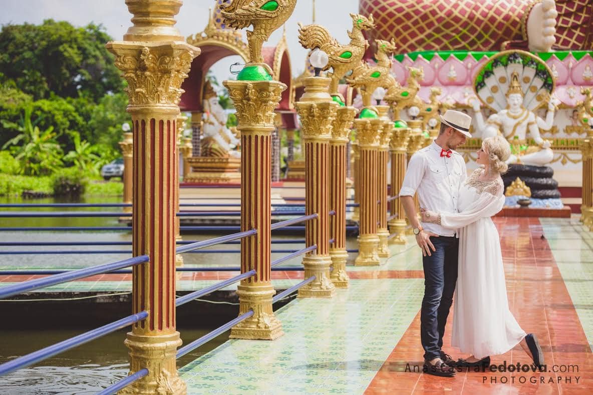 Свадебная церемония на Самуи с участием буддийских монахов — это возможность окунуться в традиции и культуру загадочного Таиланда. Церемония состоится в самом живописном храмовом комплексе острова Самуи. Буддийские монахи во главе с настоятелем храма прочтут молитвы и мантры, призовут Будду благословить священный союз любви. Свадебная церемония в тайском стиле подойдет для пар любого вероисповедания и возраста, она также может стать великолепным дополнением к европейской свадебной церемонии.